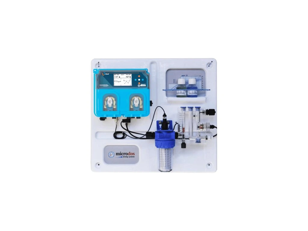 DUAL SMART SALT - Digitálne peristaltické čerpadláNOVÝ DUAL SMART SALT. Všetko v jednom. Dual Standard pH a Redox/Chlór regulátor s peristaltickým dávkovacím čerpadlom na pH strane, na strane Redox so zásuvkou 230 V pre ovládanie solinátora. Redox verzia so sondou Rx, Chlór verzia vybavená otvorenou amperometrickou chlórovou sondou.