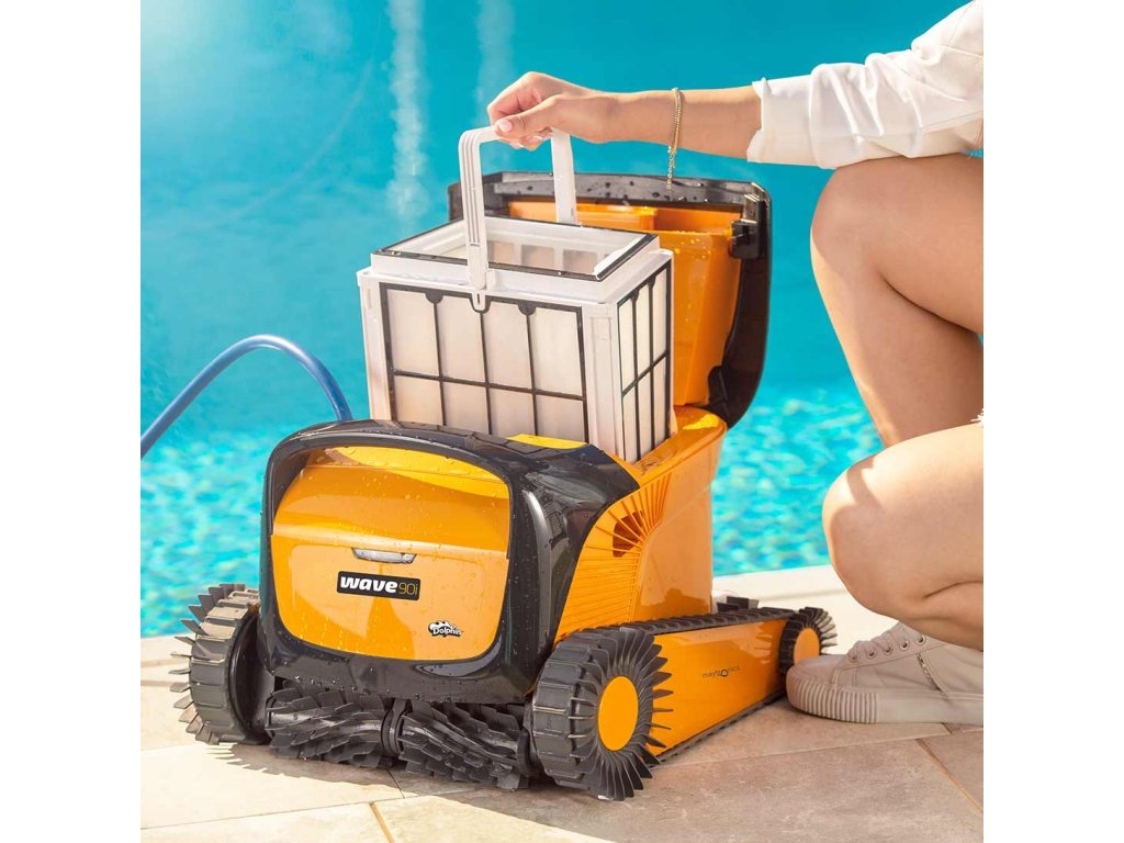 Robotický vysávač bazénov Maytronics Dolphin WAVE 90i EU disponuje otočným čapom proti zamotávaniu kábla Swivel. O zachytenie aj tých najmenších častíc sa stará viacvrstvový filter. Ten je zložený z predfiltra, jedného jemného a dvoch ultrajemných panelov. Nechýba ani extra tesnenie. Jeho čistenie je jednoduché, uľahčuje ho bezproblémový prístupný zhora.