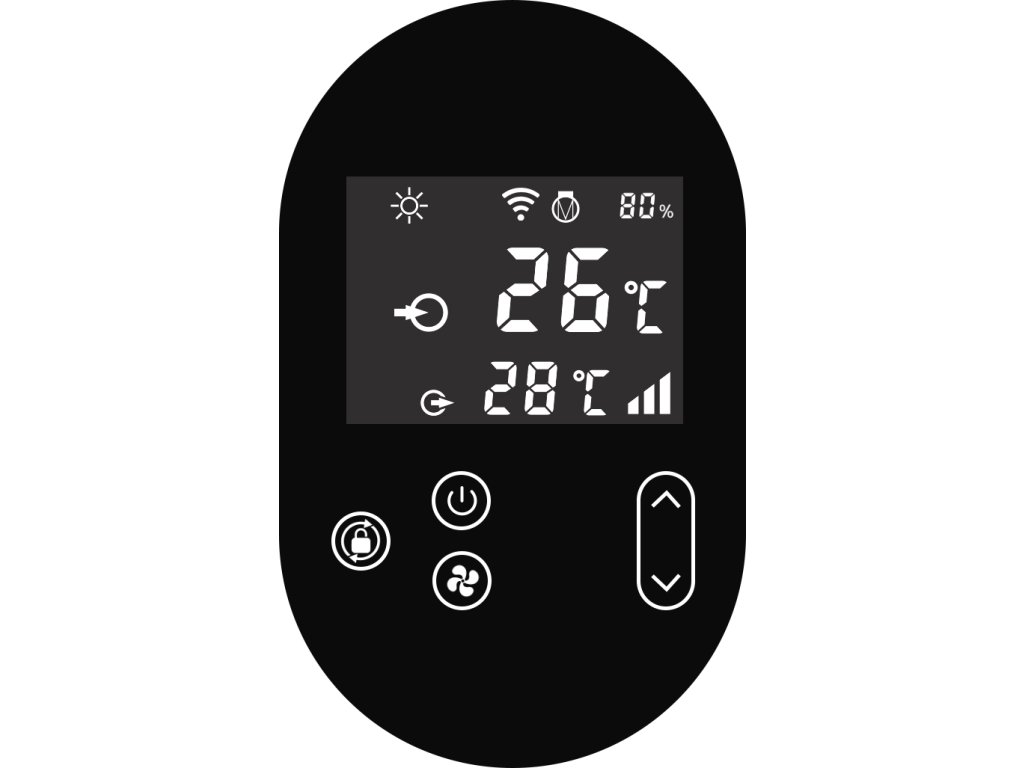 Tepelné čerpadlo sa ovláda veľmi jednoducho a intuitívne vďaka ovládaču Touch Controller. Na ovládači sa zobrazuje ukazovateľ výkonnosti, teplota vody na vstupe a výstupe i prietok. Jedným tlačidlom nastavíte režim a druhým tlačidlom si vyberiete z možností Odomknutie / Auto / Ohrev / Chladenie.