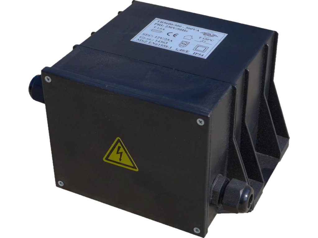 Bazénový transformátor je zaliaty v ochrannej izolácii pripravený k okamžitému pripojeniu. Transformátor je umiestnený v hornej časti čiernej skrine, v spodnej časti sú svorky na zapojenie káblov.